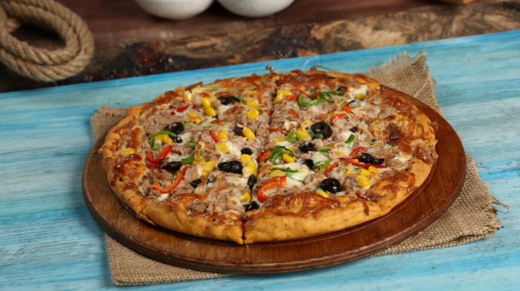 Pizza sosu mozeralla sucuk sosis kapya biber yesil biber zeytin mantar misir